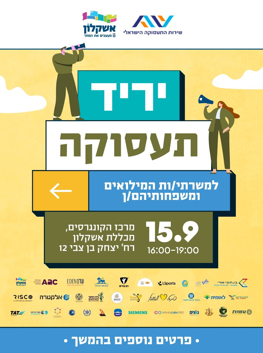 📢 עיריית אשקלון ושירות התעסוקה הישראלי מזמינים אתכם ליריד תעסוקה ייחודי למשרתי ומשרתות המילואים ובני משפחותיהם!